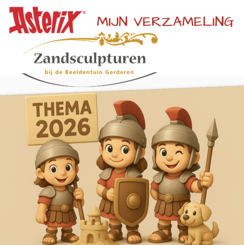Het Romeinse Rijk in zand! Dat is het thema in 2026 voor de zandsculpturen in de Beeldentuin te Garderen. En een deel van mijn Asterix verzameling zal daar worden tentoongesteld, hoe leuk is dat! Meer nieuws volgt binnenkort!