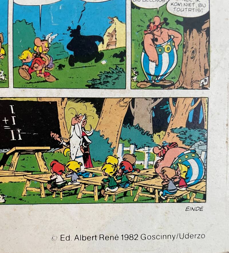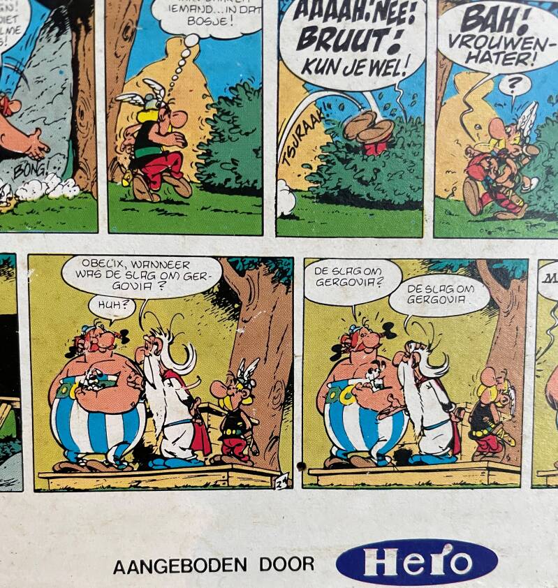 Uniek verzamelaarsobject; hardboard wandplaat van b 660 x h 45 cm, bedrukt met een Asterix verhaal. Uitgave van Hero uit 1982