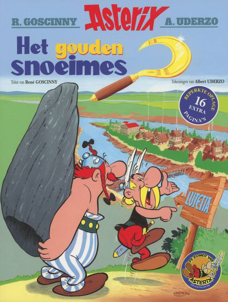 Deze luxe editie van het tweede Asterix avontuur "Asterix en het gouden snoeimes" heeft naast het reguliere verhaal ook het origineel geïnkte verhaal en een dossier van maar liefst 32 extra pagina's met schetsen, scenario's en leuke wetenswaardige achtergrondverhalen, waardoor het album 128 pagina's dik is.