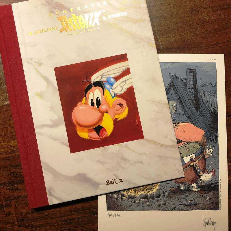 Asterix viert zijn 60ste verjaardag met een uniek hommagealbum. Deze versie is de luxe uitvoering, een in linnen gebonden hardcover inclusief een gesigneerde schets. Van dit album zijn slechts 250 stuks gedrukt.
