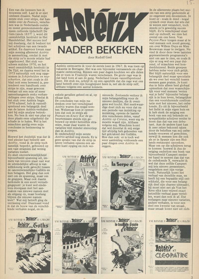 In deze uitgave van het blad Stripschrift maar liefst 30 pagina's over Asterix. Een groot interview met Asterix kenner Rudolf Geel, een interview met Albert Uderzo, een interview met René Goscinny en nog veel meer items over Asterix! Een prachtig collector's item, die samen met de Stripschrift Special over Asterix een mooie combinatie vormt!