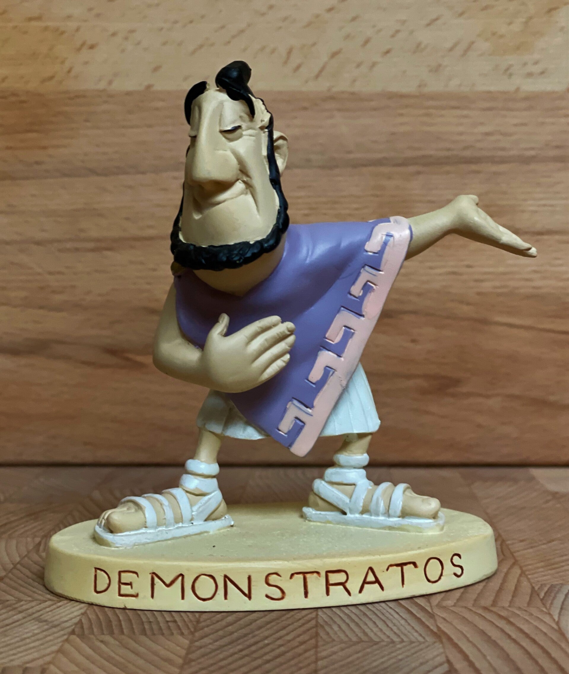 - De Grieken zijn allemaal neven van elkaar, spreken telkens hoe ze elkaar volkomen mogen vertrouwen (net als de huidige Grieken) en hun namen eindigen allemaal op -os (zoals Pingpatos en Calvados), -as (zoals Plexiglas) en -es.